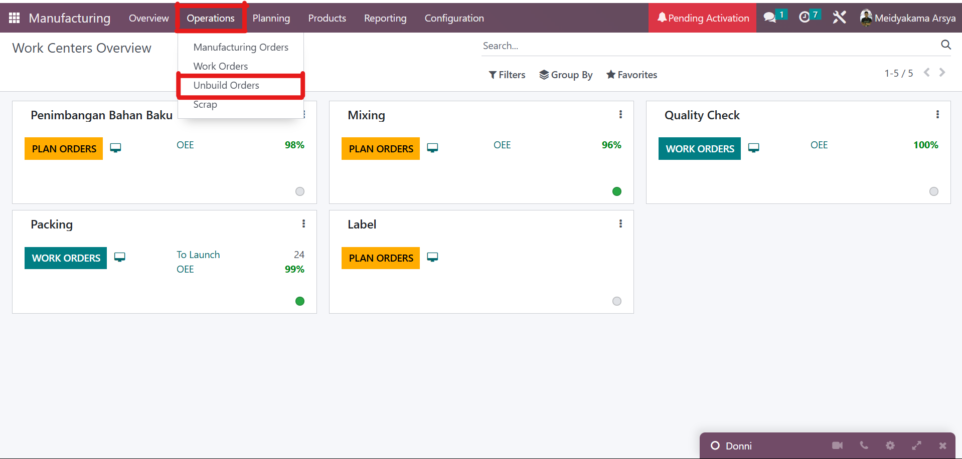 - Klick Opertions, lalu klik Unbuild Orders.